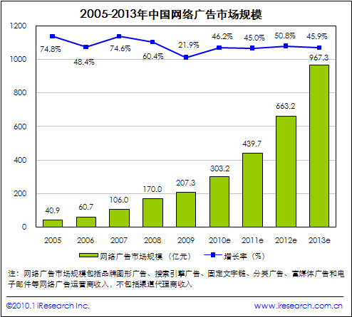 2010年中國(guó)網(wǎng)絡(luò)廣告市場(chǎng)規(guī)模將加速增長(zhǎng),預(yù)計(jì)將達(dá)303.2億元