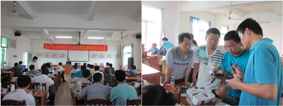 湛江動物衛生監督網:為了提高鄉鎮基層人員對移動智能識讀器的操作水平,2013年4月17—18日,湛江市動物衛生監督所開展了為期兩天的動物疫病可以追溯體系培訓,近100人參加了培訓。培訓以實際操作為主要方式,內容包括耳標佩戴、耳標補戴、防疫登記、耳標注銷、IC卡耳標清理、產地檢疫、宰前檢疫等操作。