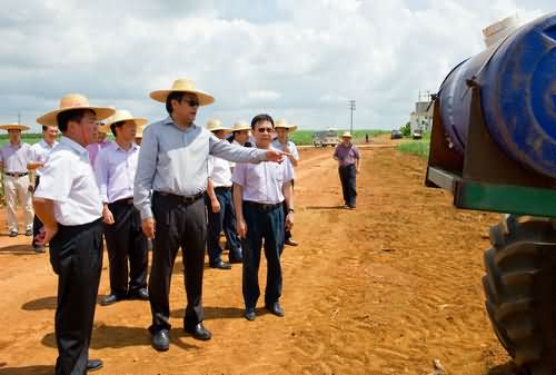 6月17 -18日,廣東省副省長鄧海光率隊到廣東農墾湛江墾區調研現代農業建設,省政府副秘書長顏學亮、湛江市委書記劉小華、副市長莊曉東;廣東省農墾集團公司 (總局) 黨組書記、董事長(局長)雷勇健,副書記、總經理(副局長)陳少平,湛江農墾局黨組書記、局長蔡澤祺等陪同調研。