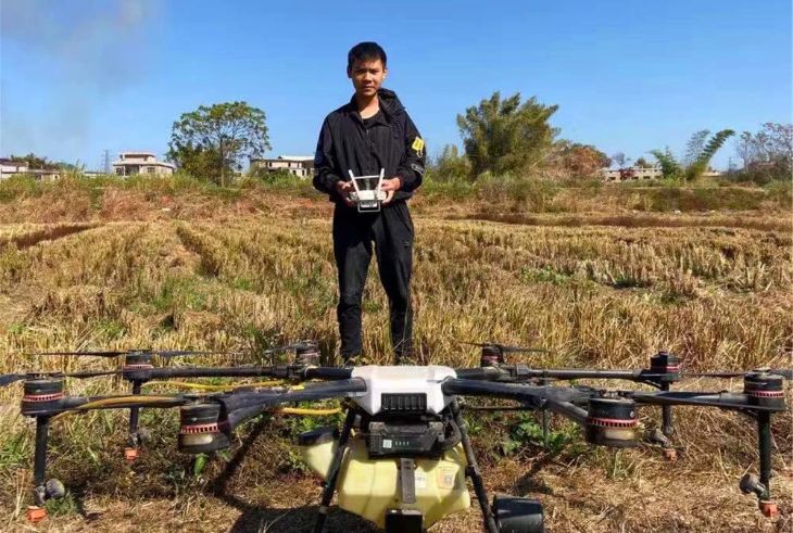 長期以來,水稻種植業單位效益低下。如今,水稻種植逐步告別了小農時代,機械化耕作、統防統治等現代作業方式已逐漸成為主流。出生于2001年的李宇導年僅18歲,稚氣未消的他已經是一名植保無人機作業能手,帶著小團隊操控植保無人機進行播種、農藥噴灑等工作。