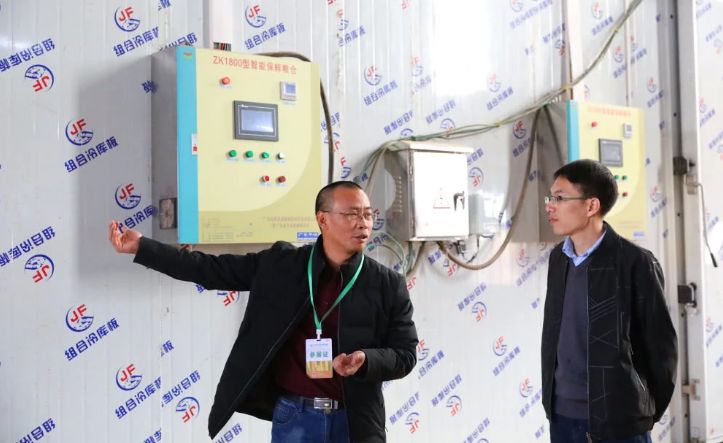 羅新輝(左)介紹新鮮稻谷之家--恒溫冷庫
