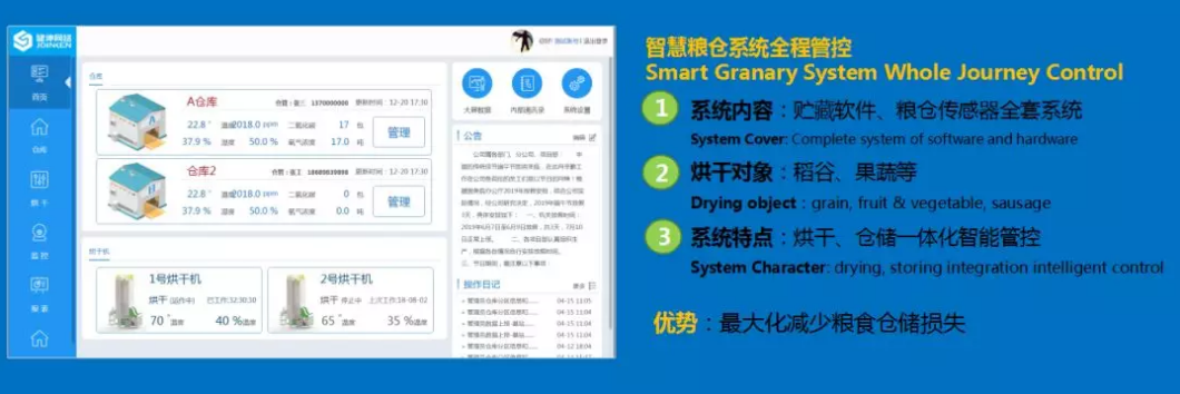 如今,興寧市現代糧食產業示范區建設已經落成。按照廣州市健坤網絡科技發展有限公司打造的“數-云-端”協同賦能的物聯網架構設計,在多家規模化糧食生產經營主體,建設智慧糧食全程機械化生產綜合示范點,智慧糧倉示范點。