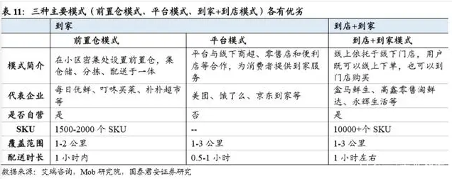 相比之下,前置倉模式下,產品自營品質有保障,配送時效也相對較高,但前期固定資產和人力投入最多, 模式最重;平臺模式下,配送效率高,固定資產和人力投入最少,但因為產品非自營其品質和供應穩定性無法保障,而且高峰時期可能存在運力不足和運費漲價的問題;到店+到家模式下,SKU 最豐富,線上線下一體化體驗效果好,固定資產和人力資本投入居中。