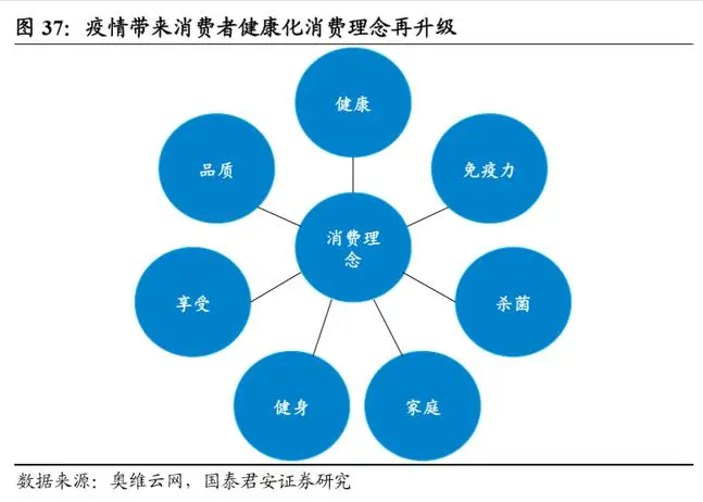 每一次疫情或安全危機過后,消費者的消費理念都會迎來一次升級,比 如“三聚氰胺事件”直接刺激豆漿機市場新一波需求,“高猛鋼事件”刺激 電水壺的“換新潮”。疫情之后,在產品方面、消費者對健康、品質、殺菌等方面的重視程度大幅提升,促使健康化和品質化產品銷售的大幅提 升;在生活方式方面,消費者對免疫力、健身、享受、家庭等方面的重 視程度明顯增加。