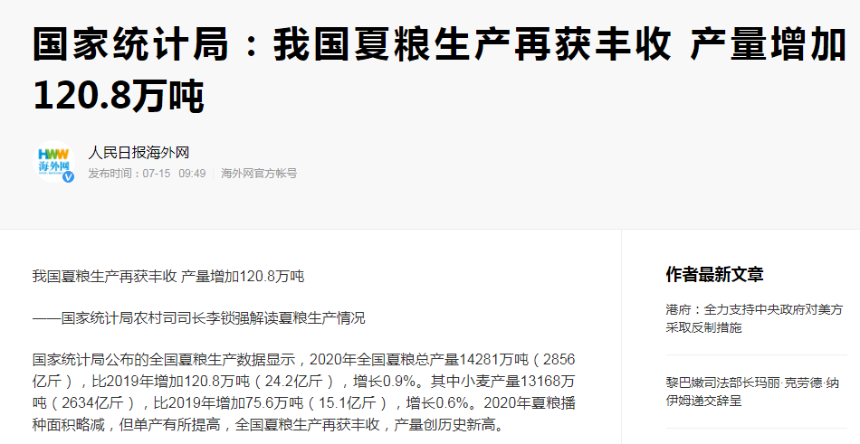 在“前有新冠肺炎疫情、后遇洪災旱災”的背景下,今年我國夏糧再獲豐收。據農業農村部日前發布的數據,今年夏糧產量達到2856億斤,增產24.2億斤,相較去年,同比增長0.9%,創歷史新高。