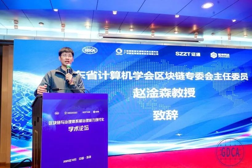 本次論壇首先由廣東省計(jì)算機(jī)學(xué)會區(qū)塊鏈專委會主任委員趙淦森教授代表會議主辦方致辭,他致辭中指出,在1024講話一周年之際,區(qū)塊鏈技術(shù)在廣東省得到廣泛應(yīng)用,并取得了較好的成效,政府出臺了相關(guān)配套政策措施引領(lǐng)高校、企業(yè)開展區(qū)塊鏈自主核心技術(shù)攻關(guān),實(shí)現(xiàn)區(qū)塊鏈和實(shí)體經(jīng)濟(jì)的融合,推進(jìn)區(qū)塊鏈在民生領(lǐng)域的應(yīng)用,希望通過本次論壇,集思廣益,整合資源,進(jìn)一步促進(jìn)廣東省區(qū)塊鏈核心技術(shù)研發(fā)和應(yīng)用推廣。