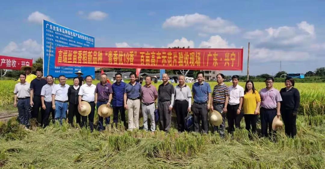 7月10日上午,受農業農村部委托,廣東省農業農村廳組織省內外專家對在興寧大坪鎮、新陂鎮種植的雜交水稻品種“青香優19香”百畝示范田進行了現場測產驗收。驗收結果為平均畝產721.4公斤,達到超級稻目標產量。