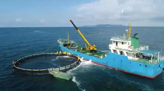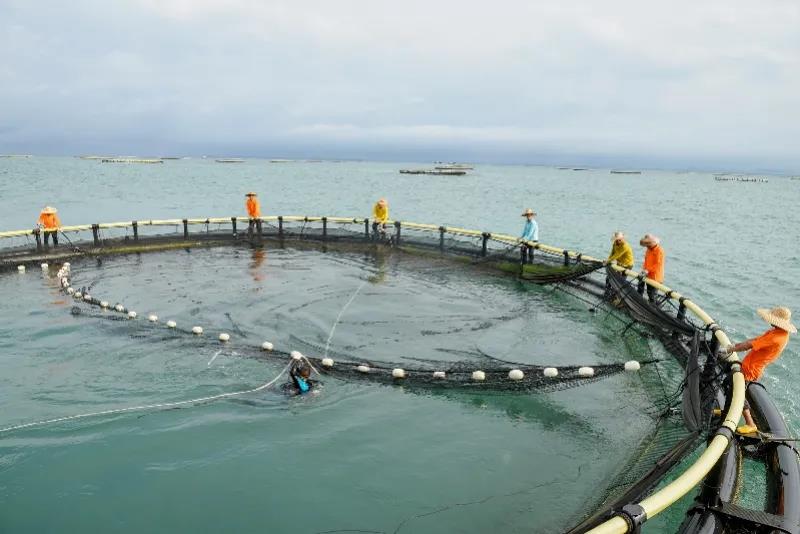 經過差不多一年養殖,開始拉網撈魚。第二輪下網捕撈,需要派蛙人潛水協助布網,務求“二網打盡”。