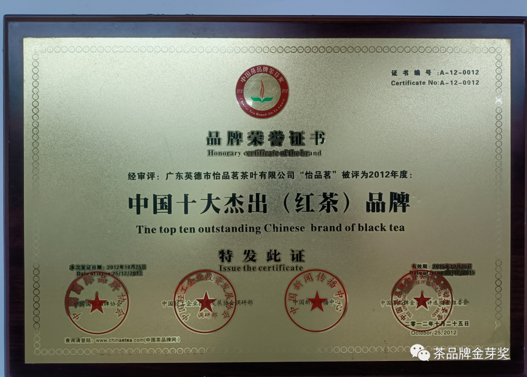 近年來,英德紅茶的種植面積、產量、銷售量、品牌價值持續攀升。英紅九號也從一個茶樹品種名,發展成享譽全國的區域性茶葉公共品牌名。經過多年的工藝改進、品質提升,“怡品茗”也在唱響粵茶品牌的同時穩步發展,先后榮獲“中國國際農產品交易會金獎”“全國名特優新農產品”“中國綠色食品認證”和“2019年世界紅茶產品推薦活動大金獎”等榮譽稱號,成為英德紅茶代表企業和全國十大紅茶名牌企業之一。