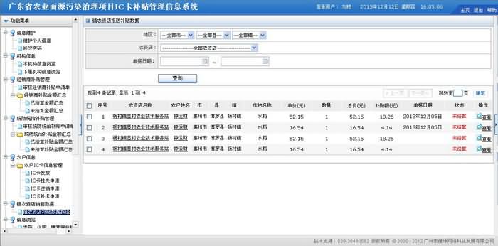 項目通過補貼的方式鼓勵農(nóng)民實施配方肥推廣、緩/控釋肥 、水肥一體化示范、水稻“三控”、主要作物病蟲害綜合防治、統(tǒng)防統(tǒng)治等化肥減量控污和農(nóng)藥減量控害工程,共同致力于減少我省農(nóng)業(yè)面源污染的工作。由于項目參與者分布較為分散,補貼的實施、監(jiān)管難度較大,需要建立一個綜合管理系統(tǒng)來對相關(guān)信息進行錄入及整合,保證省、市、縣、鎮(zhèn)等各級項目參與者都能實時了解項目進展,提高項目實施的效率和質(zhì)量。“IC卡補貼管理信息系統(tǒng)”,通過計算機網(wǎng)絡(luò)、IC卡等技術(shù)對化肥減量控污、生物農(nóng)藥、高效低毒農(nóng)藥、高效噴霧器和統(tǒng)防統(tǒng)治服務等補貼信息以及項目參與者(包括農(nóng)戶、農(nóng)資店、供銷商)等相關(guān)信息進行錄入、上報和統(tǒng)一管理,及時對全省各項目區(qū)域IC卡使用情況進行跟蹤、匯總、統(tǒng)計和分析,實現(xiàn)項目綜合、高效管理。