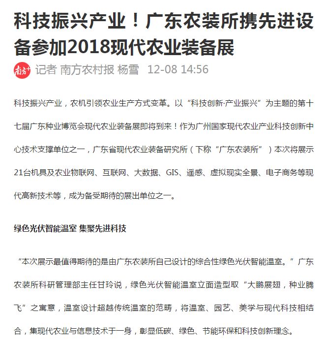南方農村報關于農裝所的參展報道
