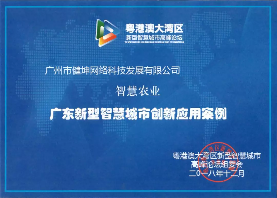 5、健坤智慧農(nóng)業(yè)整體解決方案入選“廣東新型智慧城市建設(shè)優(yōu)秀案例”