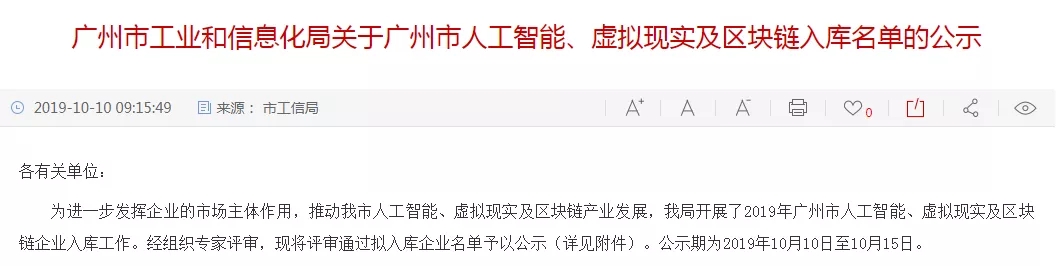 為進一步發揮企業的市場主體作用,推動全市人工智能、虛擬現實及區塊鏈產業發展,廣州市開展了2019年廣州市人工智能、虛擬現實、區塊鏈企業,及農業龍頭企業入庫工作,對全市提升區域創新能力和綜合競爭力,加快建設粵港澳國際科技創新中心具有十分重要的意義。