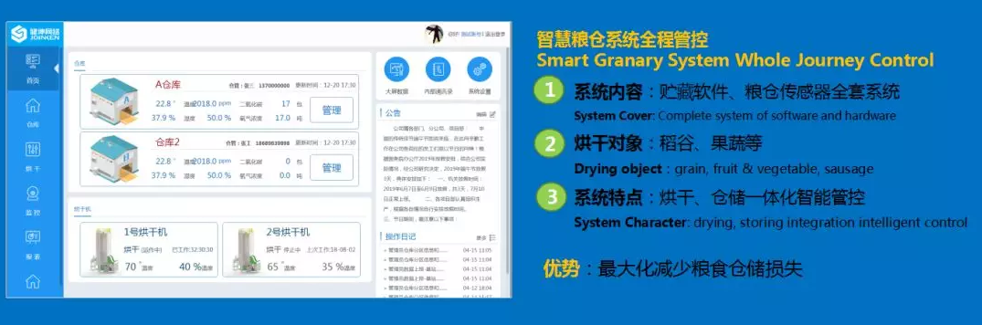 秋收之后,如何科學儲糧,關系糧食安全。在興寧市辰興種糧專業合作社、廣東米粒農業發展有限公司的糧食倉庫,每個糧倉都實現了智能控溫。每個糧倉專門安裝了糧堆、糧溫、濕度傳感器,可以精準監測并調控整個糧倉的溫濕度控制在合適范圍。