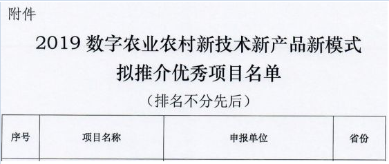 11月5日,農業農村部信息中心發布《2019數字農業農村新技術新產品新模式優秀項目推薦公示》。