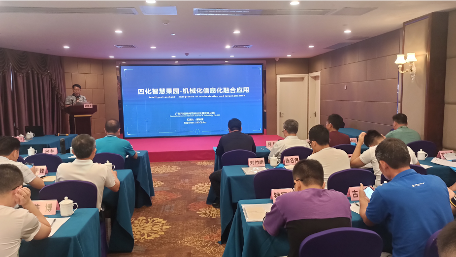 會議邀請國家荔枝龍眼技術體系專家、廣東省現代農業裝備研究所何林主任,省農裝所信息中心主任、廣州市健坤網絡科技發展有限公司謝秋波總經理,分別對鄉村振興、果園全程機械化信息化應用,進行專題講解匯報。