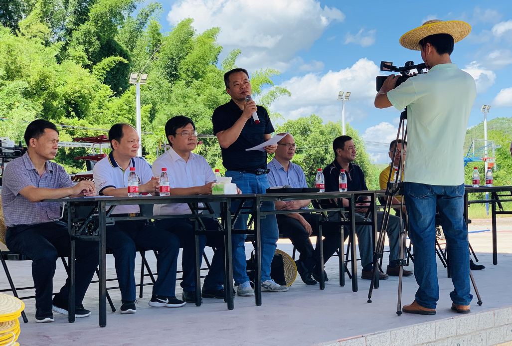 在廣東省農業農村廳的支持下,由興寧市農業農村局、興寧市潤豐農業專業合作社和興寧市辰興種糧專業合作社聯合主辦的“興寧市2019年中央扶持農機裝備高質量發展項目交機儀式” 暨“廣東省農業信息與智能裝備產業技術創新聯盟智能農機裝備示范基地掛牌儀式” 7月22日在興寧市大坪鎮潭坑村舉辦。本次活動聯合了廣東省現代農業裝備研究所、廣東省農業信息與智能裝備產業技術創新聯盟和廣州市健坤網絡科技發展有限公司等單位共同推出我省首個絲苗米種植全程機械化、信息化和智能化的示范基地。廣東省農業農村廳農業機械化管理處調研員梁曉明、廣東省農機試驗鑒定站站長陳永志、廣東省現代農業裝備研究所副所長孟祥寶、廣州市健坤網絡科技發展有限公司總經理謝秋波、梅州市農業農村局農機化管理辦公室主任溫偉明、梅州市農業機械推廣站站長曾慶文、興寧市農業農村局副局長廖偉坤等領導嘉賓以及興寧市各鎮相關部門、合作社代表、農機手約100多人共同出席了本次活動。