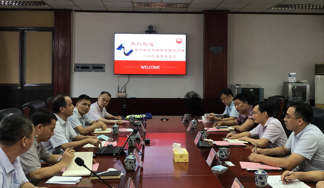 7月29日,省農業農村廳獸醫與屠宰管理處蔣文泓處長、張遠龍副處長、熊奎州副處長、鄧國東科長、方偉科長到廣東省現代農業裝備研究所考察交流,省農裝所張漢月所長、馬志光副所長、謝志剛主任、省農裝所下屬健坤公司謝秋波總經理、劉海峰副總經理熱情接待。