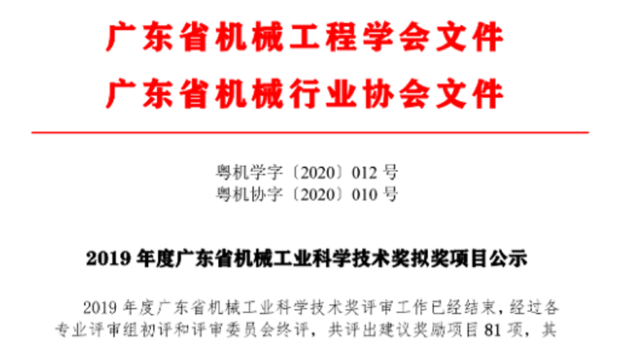 廣州健坤公司承擔的“基于卷積矩陣網絡技術的大田設施裝備研發與應用”榮獲“2019年度廣東省機械工業科學技術獎三等獎”。