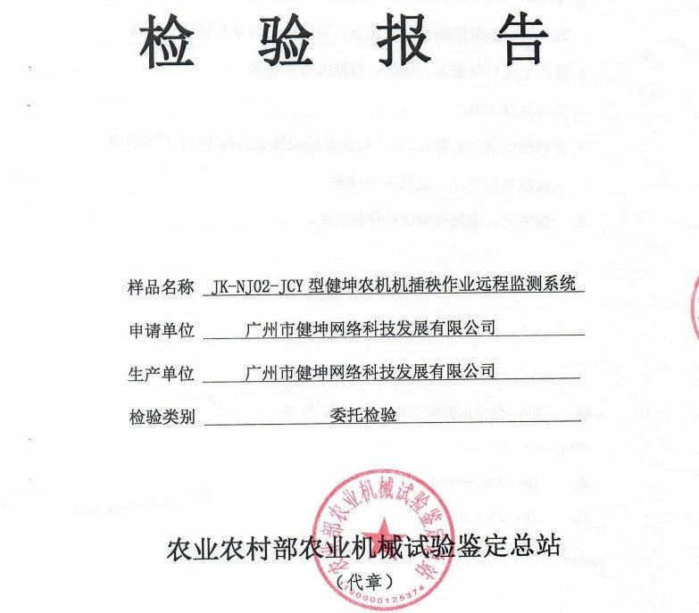 廣州健坤公司自主研發的“JK-NJ03農機作業監測系統終端”成功通過農機試驗鑒定。