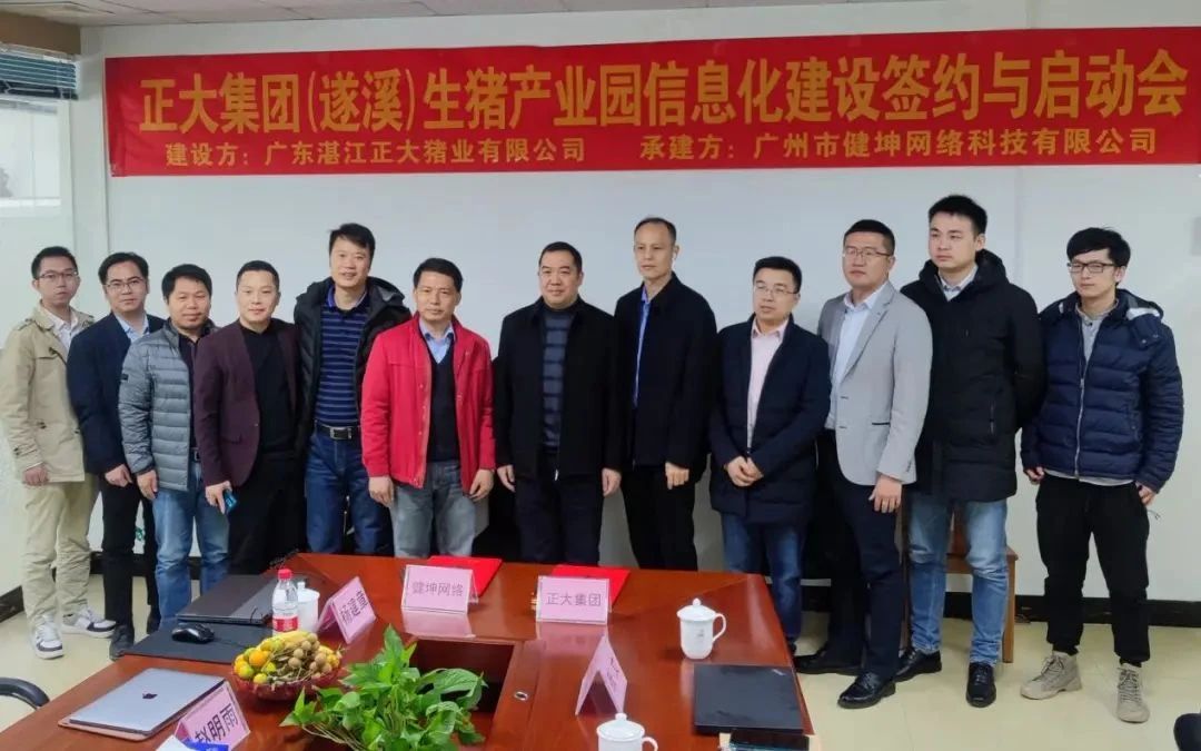 廣州健坤公司與廣東湛江正大豬業有限公司就“正大集團(遂溪)生豬產業園信息化建設項目”開展合作,簽約暨啟動儀式在湛江市遂溪縣舉行。