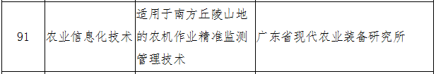 榜單上,由廣東省現代農業裝備研究所主導的三項技術榜上有名,分別是: