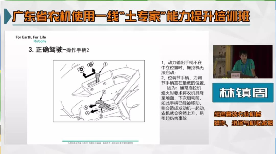 省“五一勞動獎章”獲得者林鎮周為學員們講授綠色高效農業機械操作、維修與機收減損相關課程。