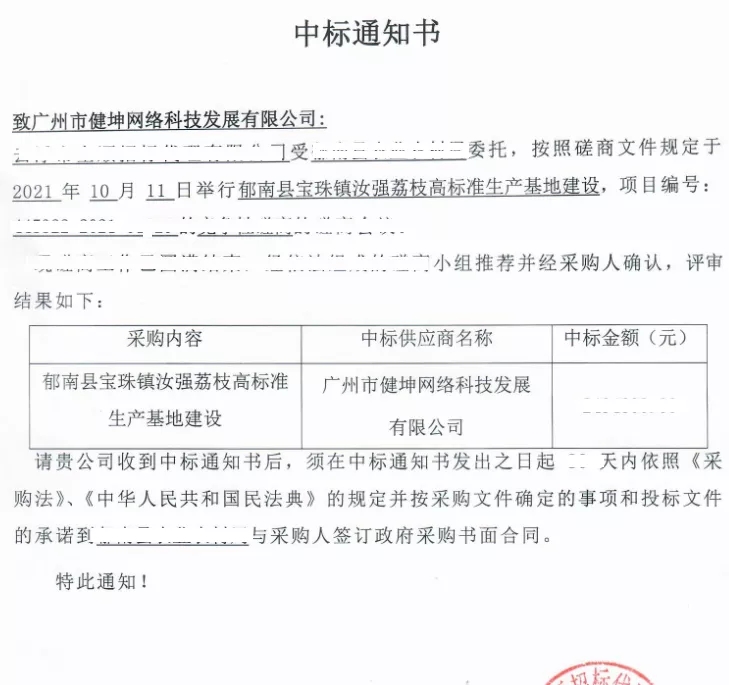 近日,小坤從項目組獲悉:健坤公司成功中標“郁南縣荔枝高標準生產基地建設”項目。這是繼2020年完成“空天地一體化智慧果園”;2021年5月份完成茂名“五化高標準智慧果園”建設、8月份啟動"惠陽區荔枝高標準生態智慧果園建設項目"、9月份啟動“徐聞縣荔枝高標準生產基地建設項目”,10月份啟動“雷州市高標準荔枝果園建設項目”后,健坤公司為推動廣東荔枝產業高質量發展參與的又一個高標準荔枝果園建設項目。
