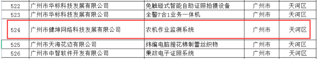 名單中可以看到,此次發布的這些“黑科技”涉及多個領域,與我們生活息息相關。其中,作為數字農業領域先鋒企業的省農裝所健坤公司,在本次榜單上有1項產品“農機作業監測系統”入圍廣東省名優高新技術產品名單。
