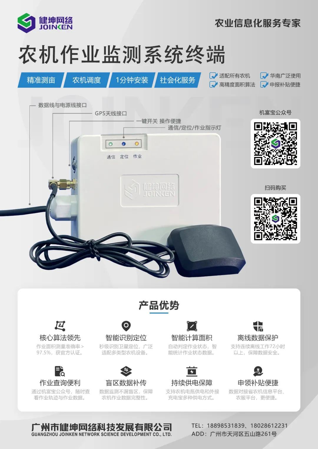 農(nóng)機(jī)作業(yè)面積監(jiān)測(cè)的精準(zhǔn)度,是決定管理部門(mén)決策作業(yè)補(bǔ)貼發(fā)放、決定農(nóng)民是否放心將農(nóng)田托管給第三方的關(guān)鍵。通過(guò)3個(gè)種植季累計(jì)2萬(wàn)多畝1300多場(chǎng)次的實(shí)地測(cè)試和算法修正,健坤公司研發(fā)出目前華南區(qū)域農(nóng)機(jī)作業(yè)面積監(jiān)測(cè)精度最精準(zhǔn)的算法,并獲得相關(guān)發(fā)明專(zhuān)利。該裝備技術(shù)呈送管理部門(mén)檢測(cè)過(guò)程中,監(jiān)測(cè)農(nóng)機(jī)作業(yè)面積精準(zhǔn)度達(dá)到99.5%。