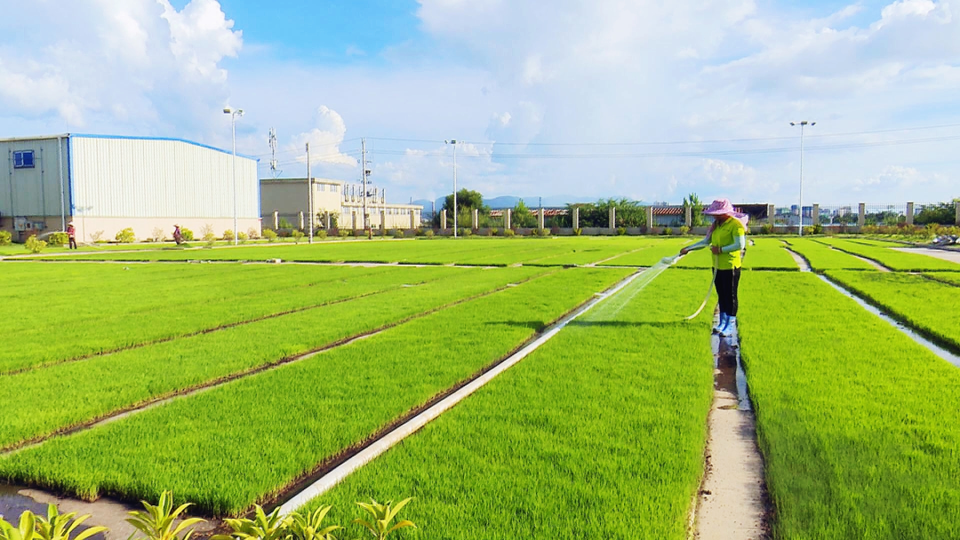 為了解決晚稻育秧無稻田的問題,南雄市新供銷天潤現代農業引進旱地育秧技術,在早稻未收割時,在廣場、空地等水泥地進行育秧,在節約時間、場地的同時,為農戶集中規模育秧,統一管理,有效預防病蟲害,保障秧苗質量。農戶收割完早稻,打好水田,就能直接進行晚稻插秧。