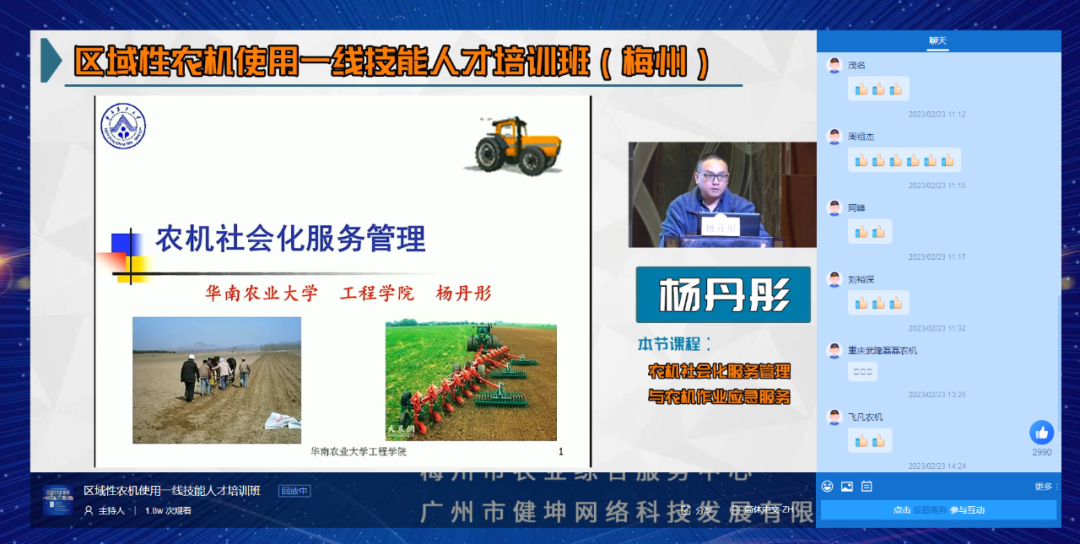 培訓班采取“線上”直播+“線下”實訓,理論與實操培訓相結合方式開展,結合春季農業生產所需,圍繞農機化生產各環節及綠色、高效、智能農機化技術裝備應用,邀請高校教授、相關技術專家就農機社會化服務管理與農機應急作業和拖拉機、插秧機、水稻育秧播種設備、農用無人機等主要農機具操作使用及維修保養等內容進行授課。共有各地國家級、省級農機使用一線“土專家”,省級“全程機械化+綜合農事”服務聯合體等農機服務主體和農機維修點的技術骨干人員等超6000人參加。
