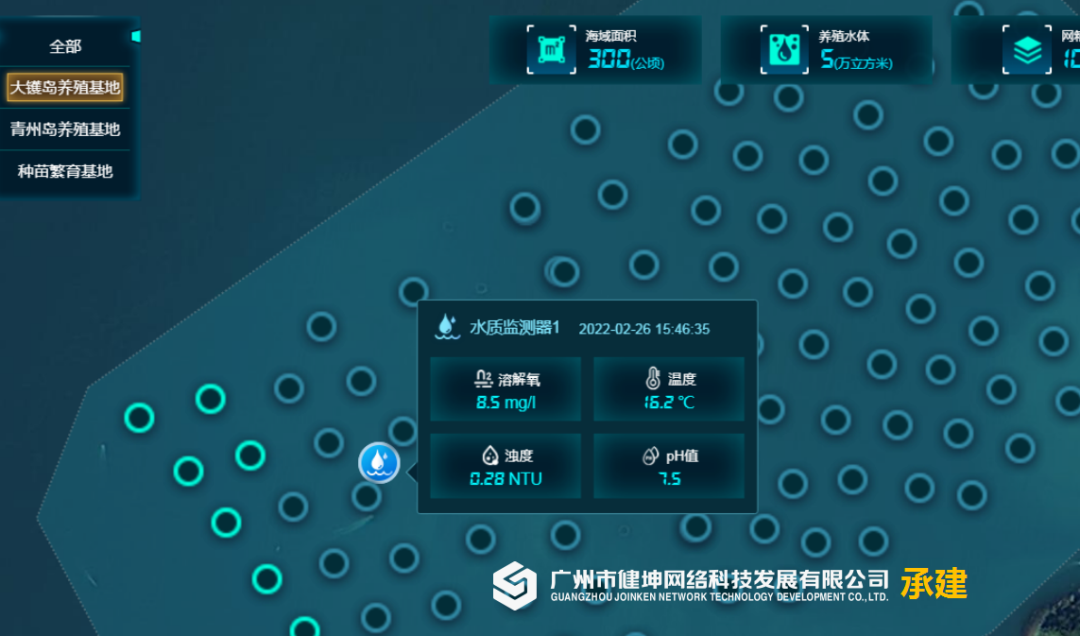 2021年,陽江市深海網(wǎng)箱養(yǎng)殖產(chǎn)業(yè)園與廣州市健坤網(wǎng)絡(luò)科技發(fā)展有限公司達(dá)成數(shù)字漁業(yè)專項(xiàng)合作協(xié)議,基于健坤公司21年的數(shù)字農(nóng)業(yè)實(shí)踐經(jīng)驗(yàn),開發(fā)農(nóng)語云·深海網(wǎng)箱智慧養(yǎng)殖綜合管理平臺(tái),集成視頻監(jiān)視及環(huán)境監(jiān)測系統(tǒng)、信息傳輸交互系統(tǒng)等一體化物聯(lián)網(wǎng)與AI人工智能技術(shù),配套水下機(jī)器人、智能水質(zhì)監(jiān)測器、水面水下一體化視頻監(jiān)測與太陽能供電設(shè)備,最終實(shí)現(xiàn)空天海地一體感知、無人駐守的數(shù)字養(yǎng)殖模式。